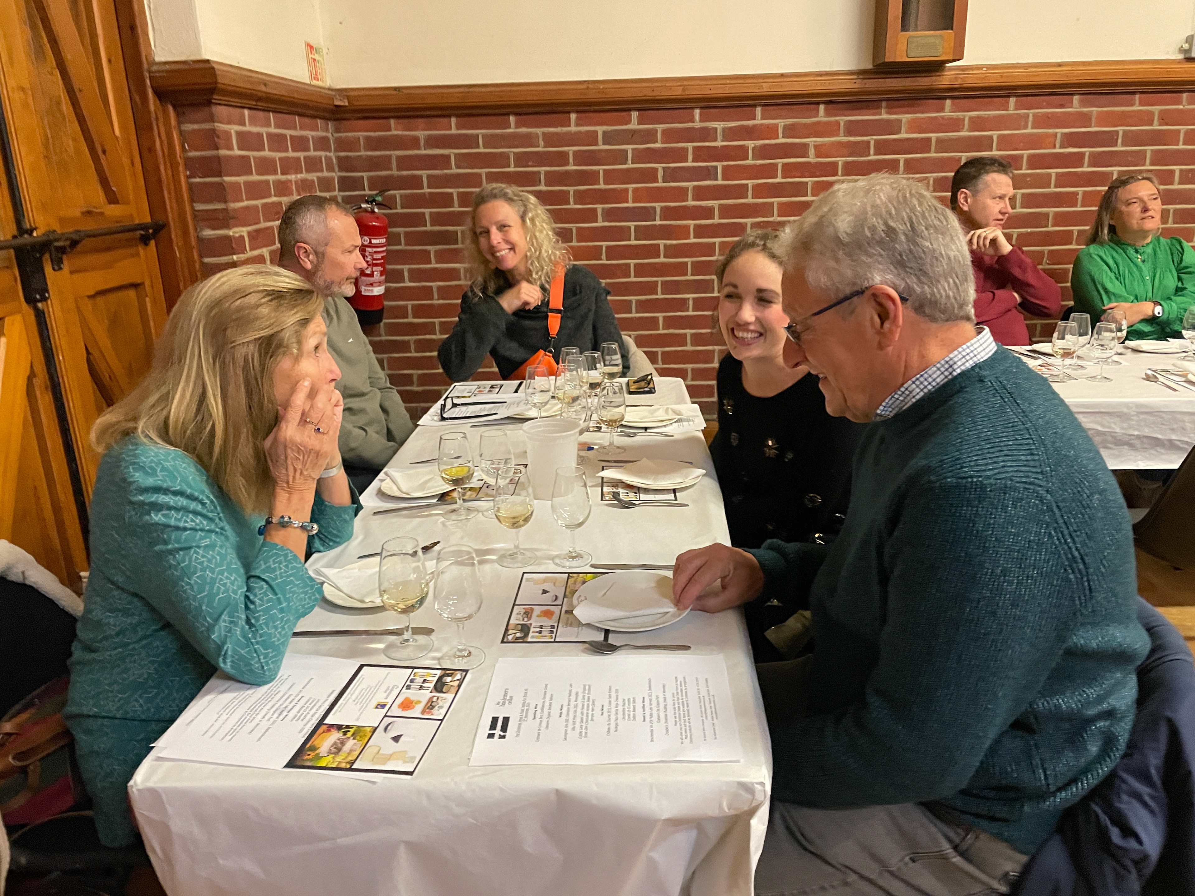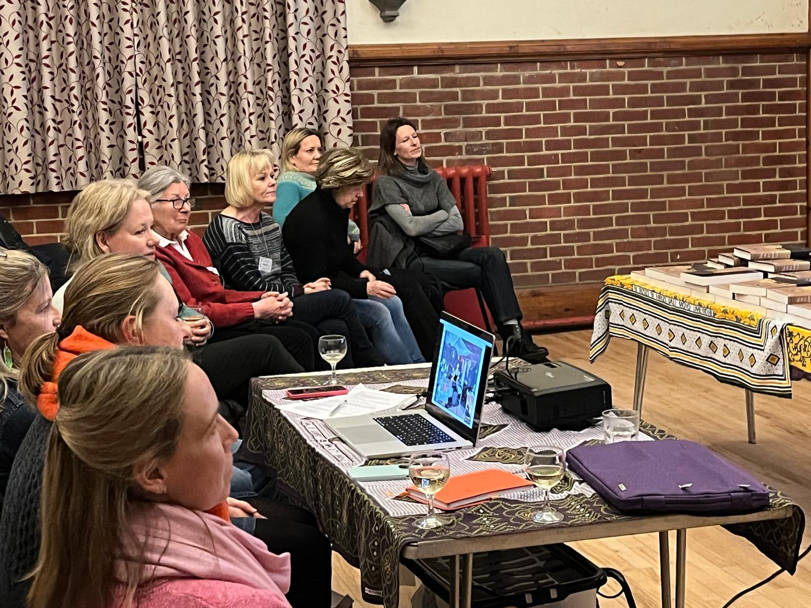 What a fantastic, festive evening we had at our Christmas Wine & Food Tasting which welcomed our members and their male guests. A huge thank you to Richard from Haslemere Cellar for introducing us to exquisite wines – sparkling, white, red, dessert wine and port – along with a most delicious selection of British and European cheeses, salamis, smoked salmon and Serrano ham. Last on the menu was Christmas pudding made by Crosbie's Cakes in Wormley.