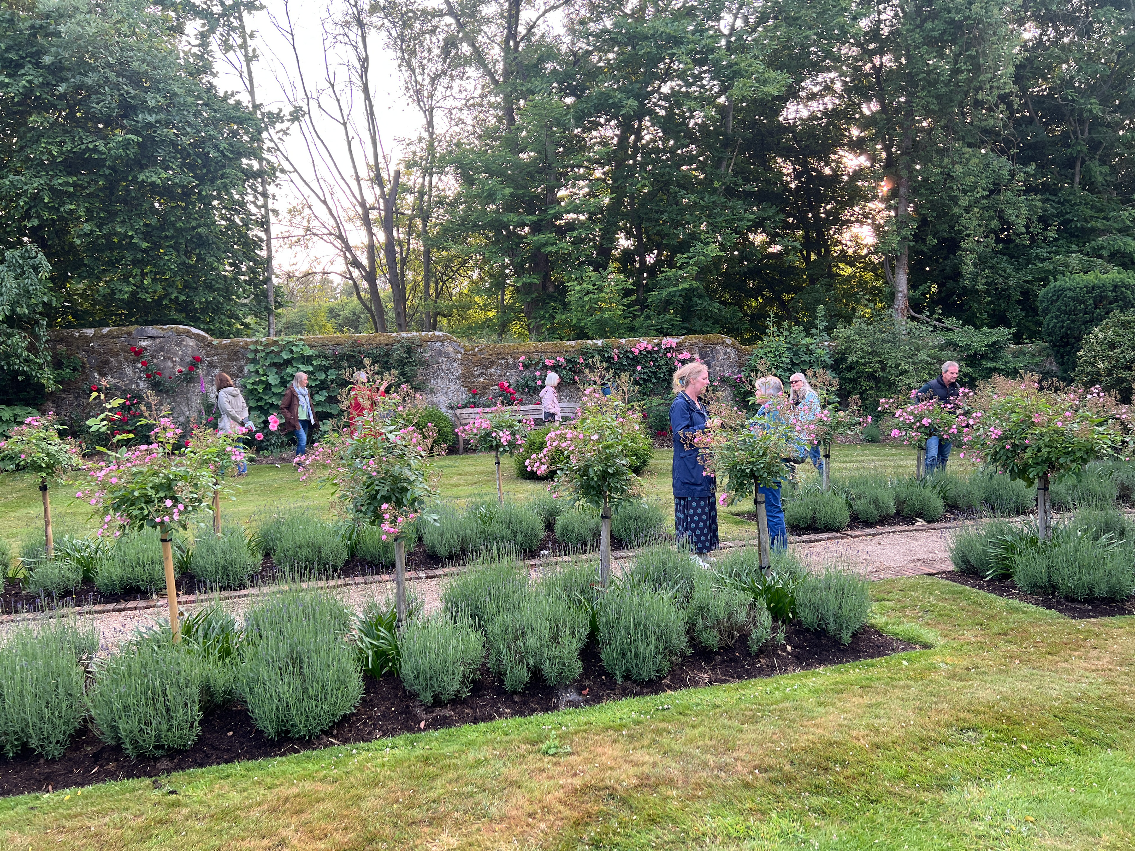 Forty WIBS members and guests enjoyed a gorgeous evening exploring the gardens, led by the wonderfully knowledgeable head gardener, Mart. We were especially taken with the Rose Walk, (delicate Ballerina rose underplanted with lavender), the elegant white topiary garden with its fish pond and the very impressive kitchen garden.